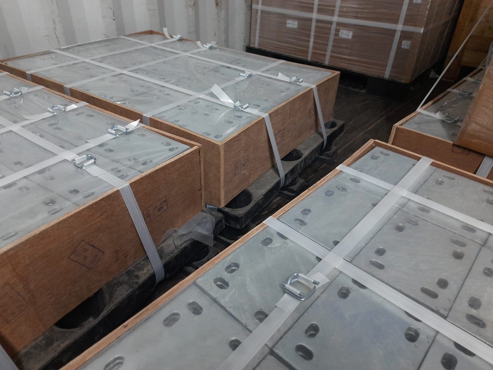 All packaging options undergo meticulous securing onto skids or pallets, complete with edge protection on all sides. Subsequently, packages are securely banded and stretch wrapped to ensure parts remain affixed to the skid, minimizing any potential movement during transit.